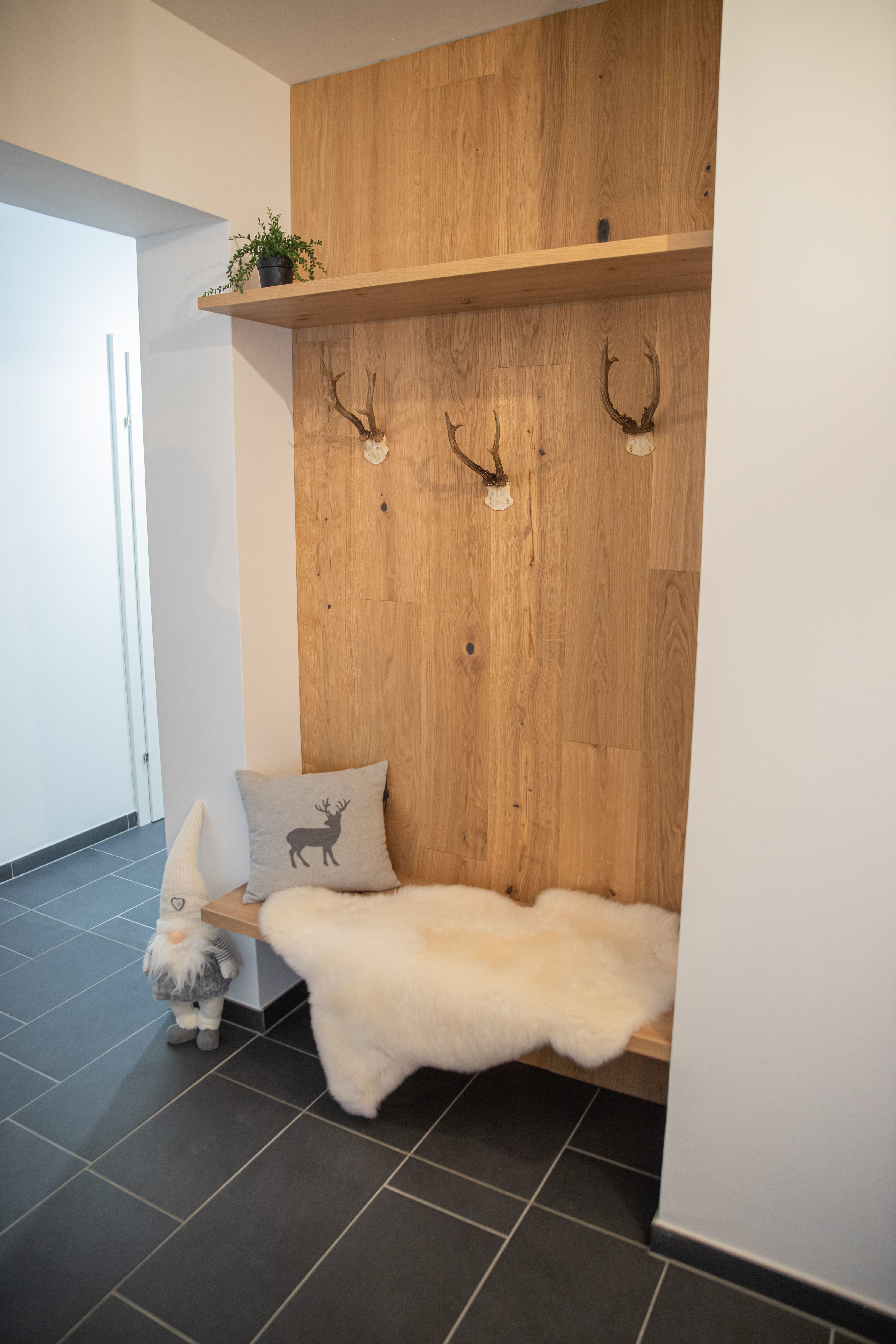 Mit Sorgfalt ausgewählte Naturmaterialien und warme Farbtöne kreieren ein besonderes Ambiente zum Wohlfühlen. Hier können Sie ganz für sich sein und den Moment genießen – ob gemütlich bei einem Buch im Wohnraum oder am Panoramabalkon beim Betrachten der tief verschneiten umliegenden Bergwelt.