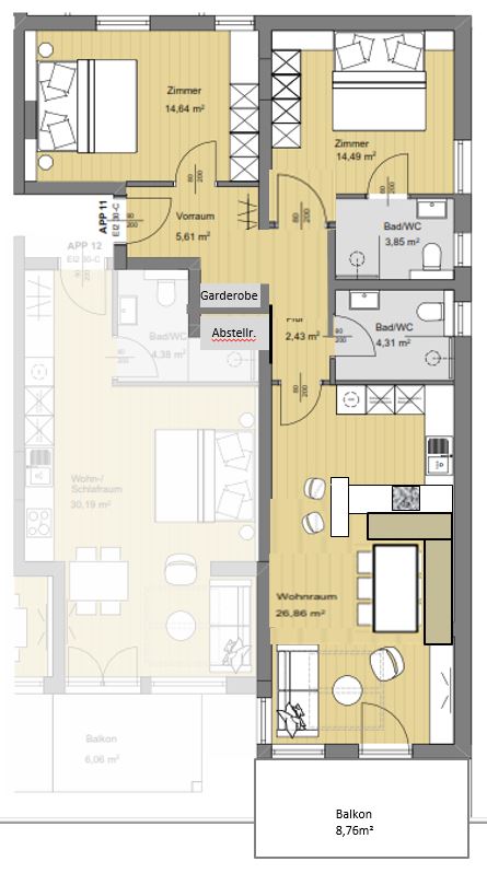Das Appartement ist für maximal 6 Personen ausgelegt.